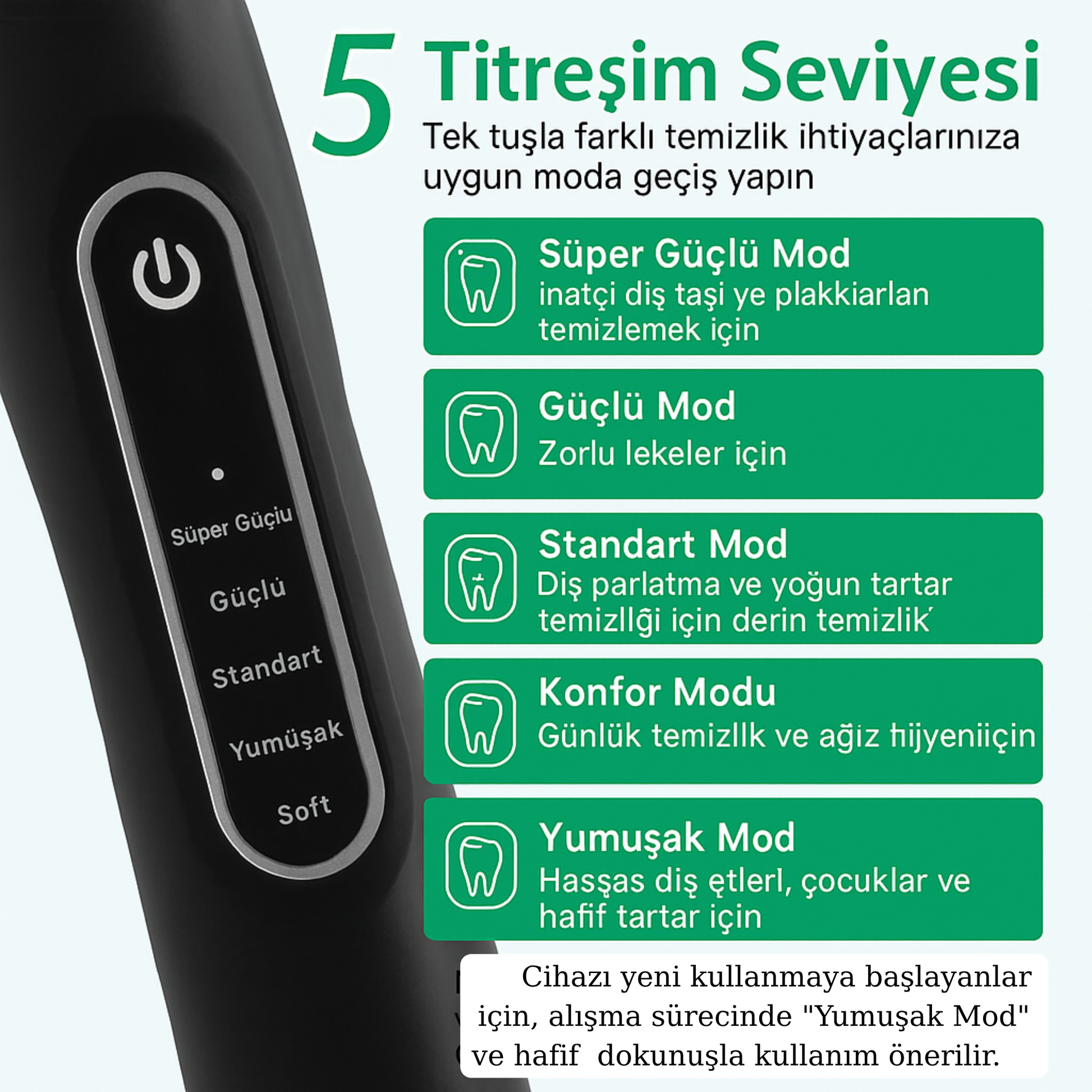 Dakikada 2 milyon titreşimle tartar, plak ve lekeleri etkili şekilde parçalar.